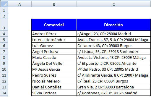 Si en una celda nos han codificado la dirección completa de unos empleados y a nosotros lo que nos interesa localizar es un dato dentro de dicha dirección, tenemos que buscar una lógica para que podamos identificar todo esto de una manera masiva.